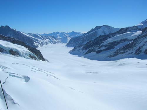 Es folgte der Ausstieg zugunsten des Eismeeres, welches diesen Namen verdient. Dann kamen wir endlich am „Top of Europe“ an, wie überall zu lesen war: Der am stärksten vergletscherte Teil der Alpen, die zwei höchstgelegenen Bahnhöfe, die höchste Poststelle und, und, und Europas.