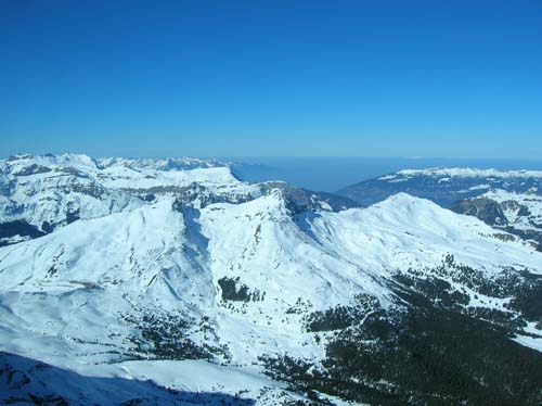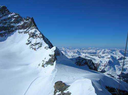 Was folgte, war unbeschreiblich. Postkartenpanorama zum Anfassen. Naja, zumindest bestand es nicht aus Papier. Von der Aussichtsterrasse aus konnte man scheinbar unendlich weit gucken, laut Wikipedia bis in den Schwarzwald bzw. nach Frankreich. Unglaubliche Massen an Schnee und Eis erstreckten sich vor unseren Augen. Unbeschreiblich, diese Landschaft.
