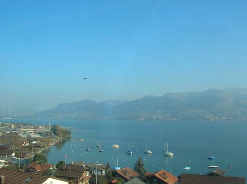 Zunächst mussten wir jedoch mit dem Zug fahren, und zwar fast vier Stunden. Doch nachdem man Bern auf dem Weg nach Interlaken verlassen hatte, war es keineswegs eine Qual, die Landschaft hinter dem Fenster vorbeiziehen zu sehen. Spätestens ab Thun, wo der Thunersee beginnt, bereute man es nicht mehr, sich morgens aus dem Bett gequält zu haben. Die ersten schneebedeckten Berge tauchten auf der einen Seite auf, während auf der anderen der See in der Sonne glitzerte.